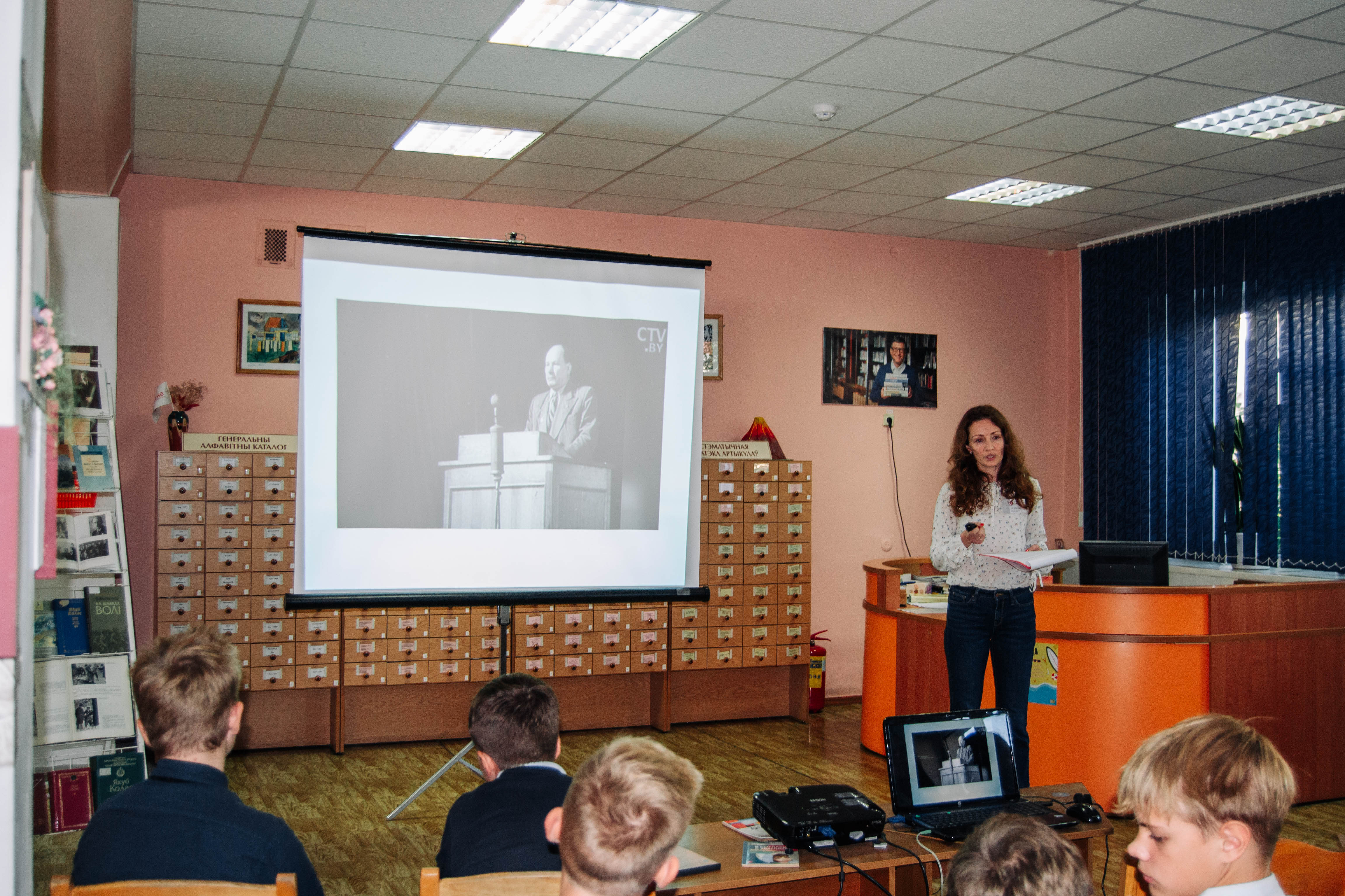 На мерапрыемстве прысутнічалі вучні 7 класа ДУА «Гімназія № 1 г. Брэста імя Абаронцаў Брэсцкай крэпасці». Прызентацыя перанесла хлопцаў і дзяўчат у мінулае, дзе яны ўспомнілі аб жыцці і творчасці Я. Коласа і даведаліся, як ушанавана імя Я. Коласа на тэрыторыі Беларусі.
