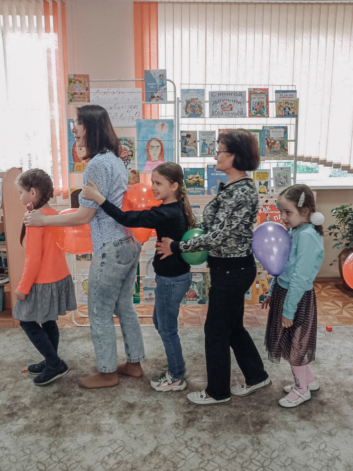 Праздник начался с представления команд, их творческих семейных гербов. Дети читали стихи, отвечали на вопросы викторины «Угадай героя сказки», разгадывали семейный кроссворд, искали концовки пословиц о семье, используя книги с выставки. Между конкурсами мамы и бабушки пели частушки, прыгали на скакалках, папы вместе с детьми играли в боулинг и танцевали с воздушными шарами. В этот день победила дружба!