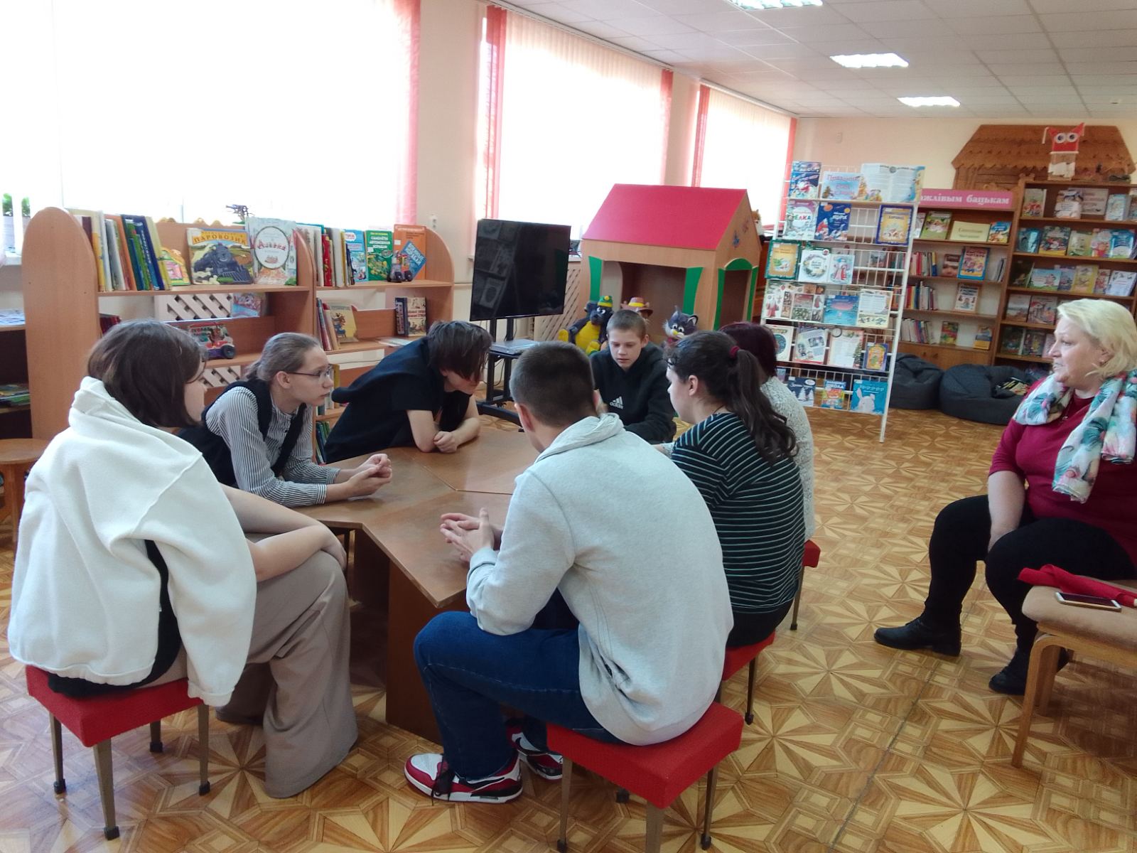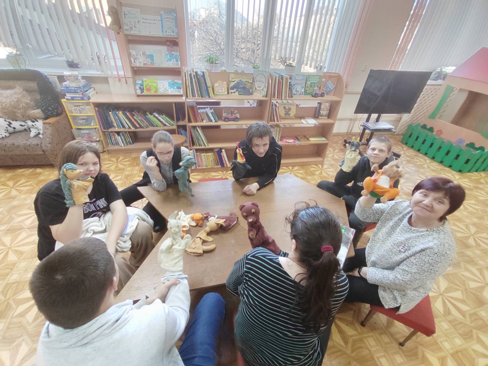 Кроме того, ребята прослушали увлекательный обзор новых книг, который познакомил их с последними литературными новинками. Это стало отличной возможностью для юных читателей найти новые любимые произведения и расширить свои горизонты в мире литературы. В завершение встречи участники театра представили постановку по сказке «Теремок». Использование игрушек-рукавичек сделало спектакль ещё более ярким и запоминающимся, а также позволило детям принять участие в процессе, что вызвало у них восторг и радость.