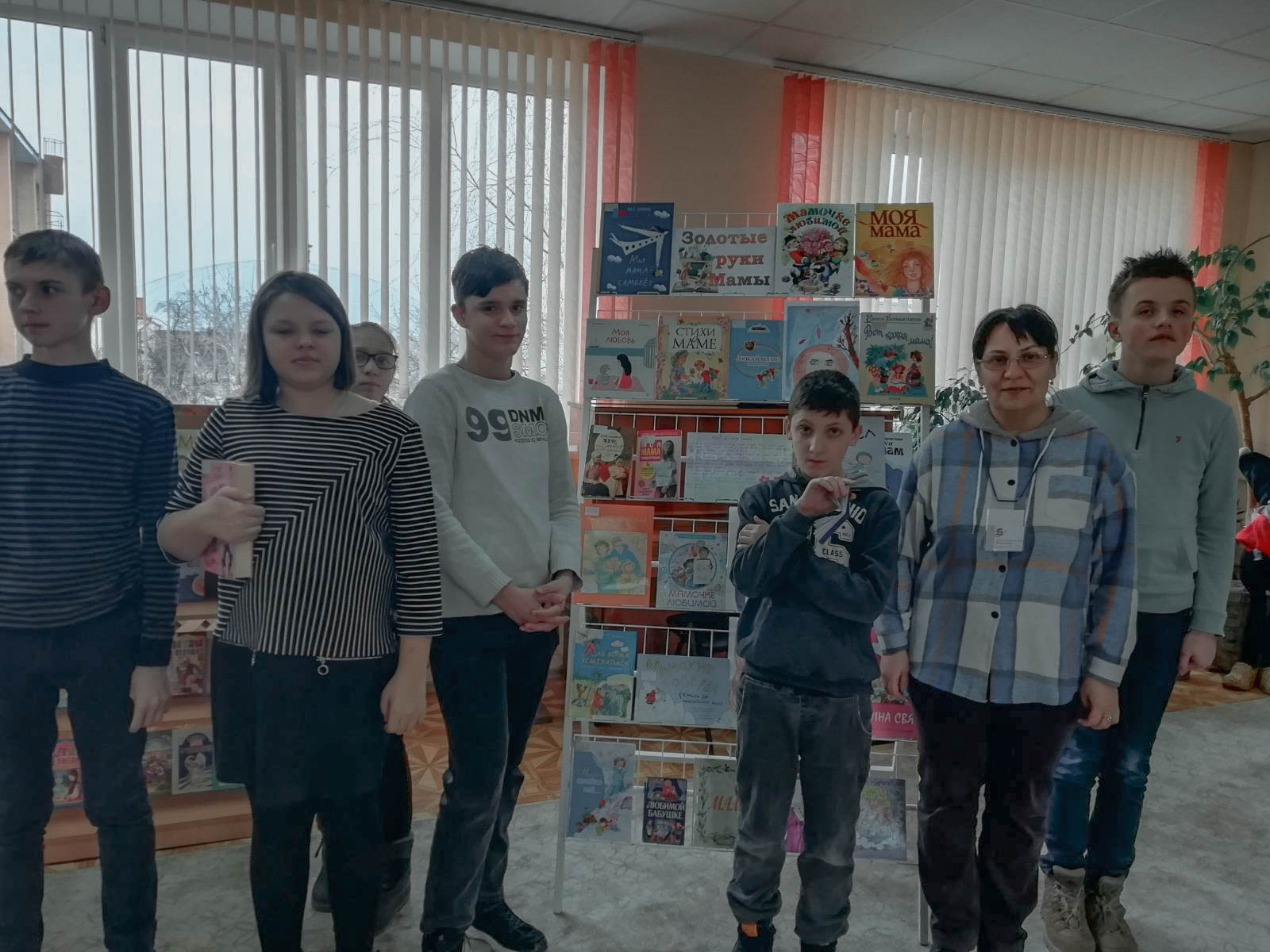 Дети слушали песни о мамах, знакомились с выставкой книг, посвящённой 8 марта. Воспитанники школы слушали историю из книги «Ангел» китайских авторов Сяо Мао и Тан Юнь.