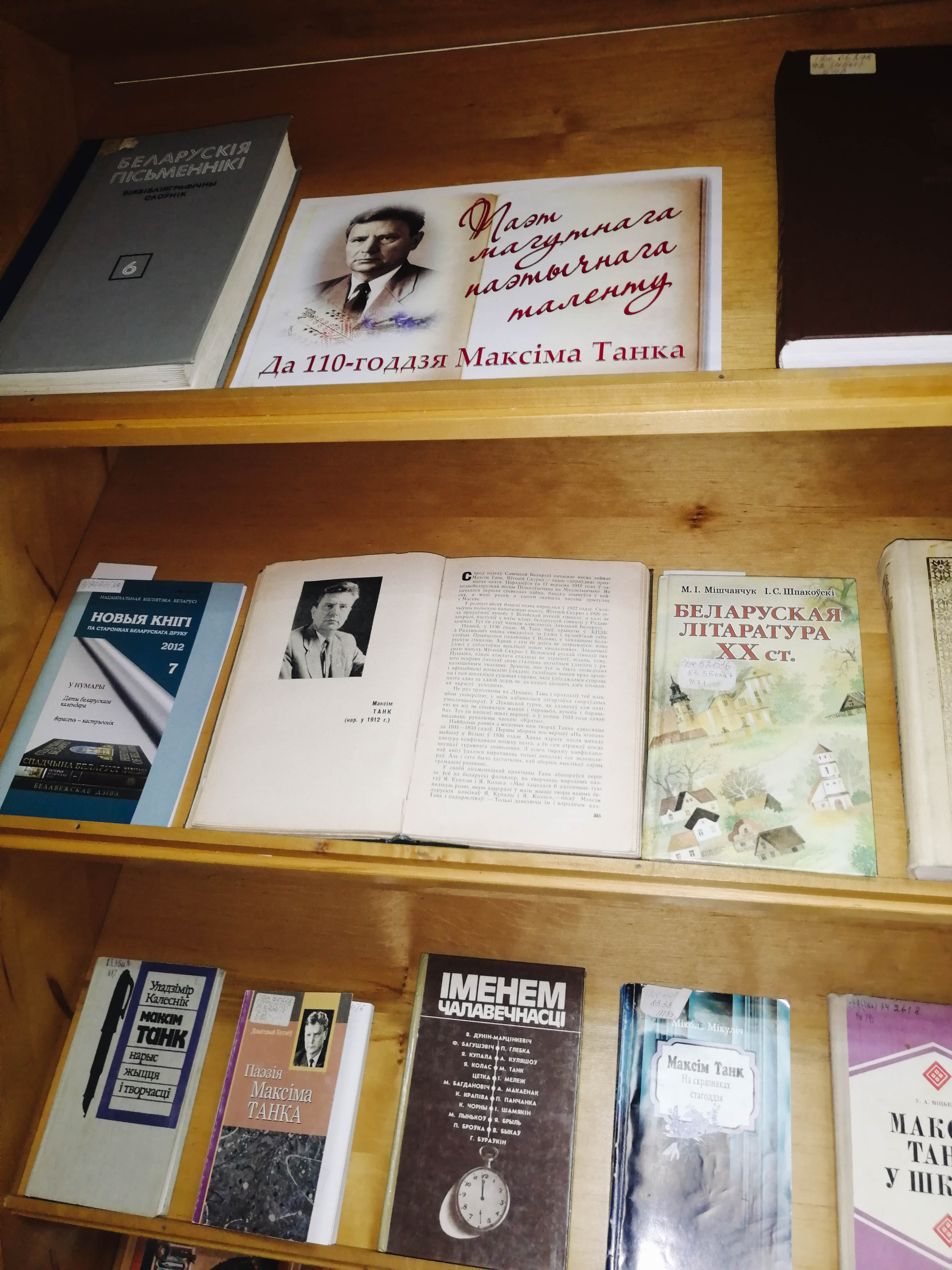Да юбілею пісьменніка ў юнацкім аддзеле падрыхтавана выстава «Паэт магутнага паэтычнага таленту». Кнігі і артыкулы з часопісаў дазваляюць прасачыць нялёгкі жыццёвы шлях паэта-рэвалюцыянера, апавядаюць пра літаратурнае вучнёўства і талент. Асобна прадстаўлены зборнікі твораў, у т. л. і для дзяцей, якія выдаваліся ў розныя часы.