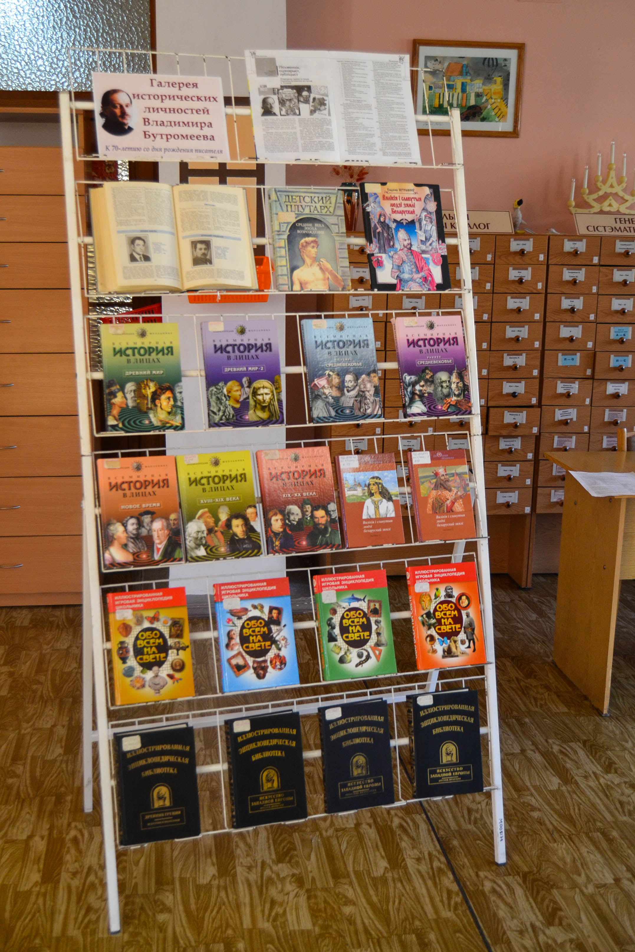 В юношеском отделе демонстрируется выставка «Галерея исторических личностей Владимира Бутромеева», посвященная его 70-летнему юбилею.