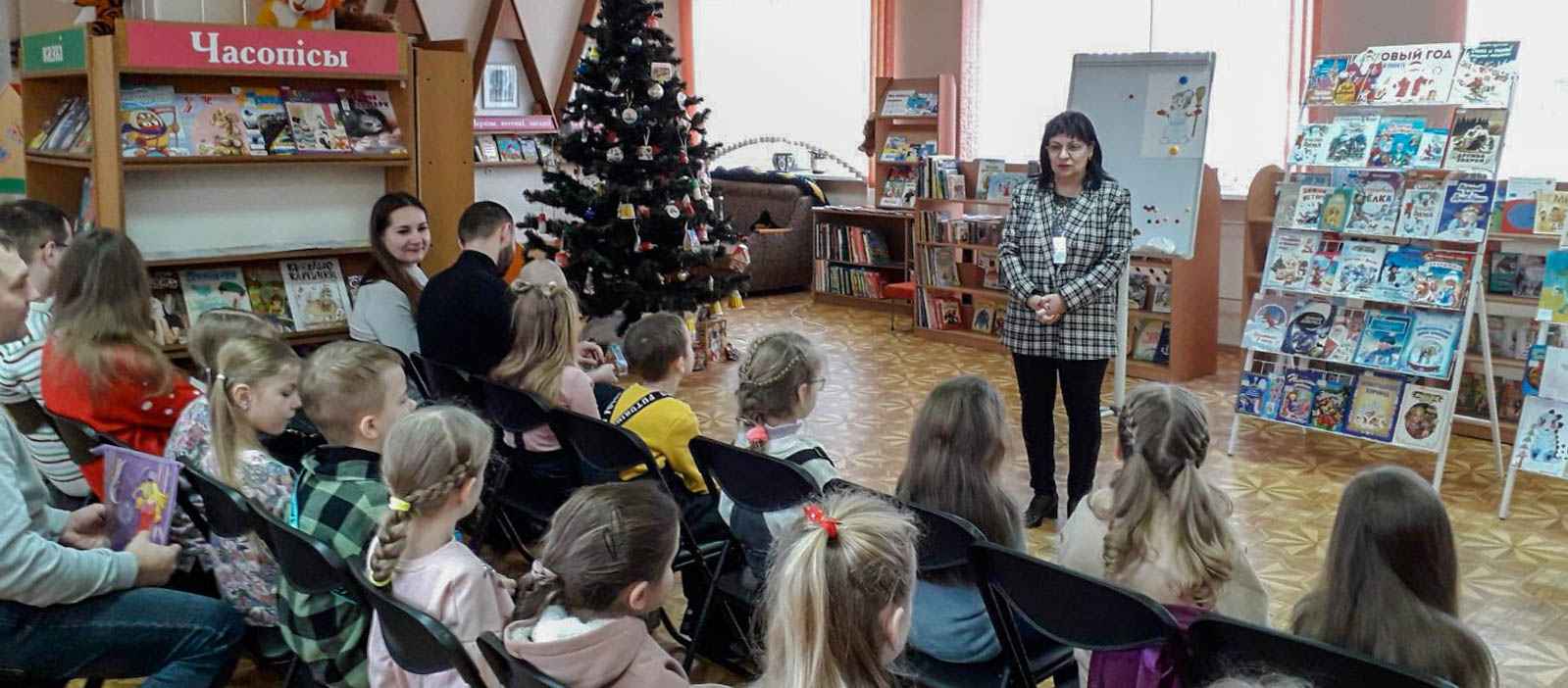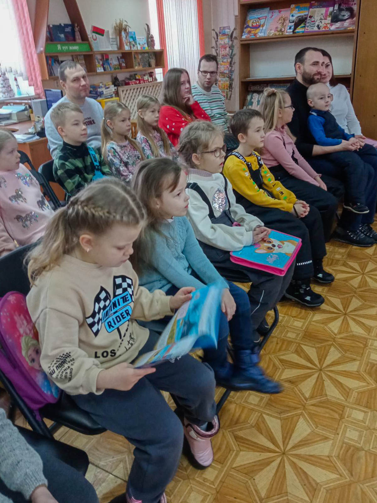 14 января 2024 года для групп «Школы маленьких волшебников» прошло познавательно-развлекательное мероприятие «Колядки Матушки Зимы». В канун Старого Нового года ребята познакомились с выставкой «Рождественские сказки». Юные читатели узнали, где живёт Дед Мороз, поговорили о таких праздниках, как Рождество и Крещение.