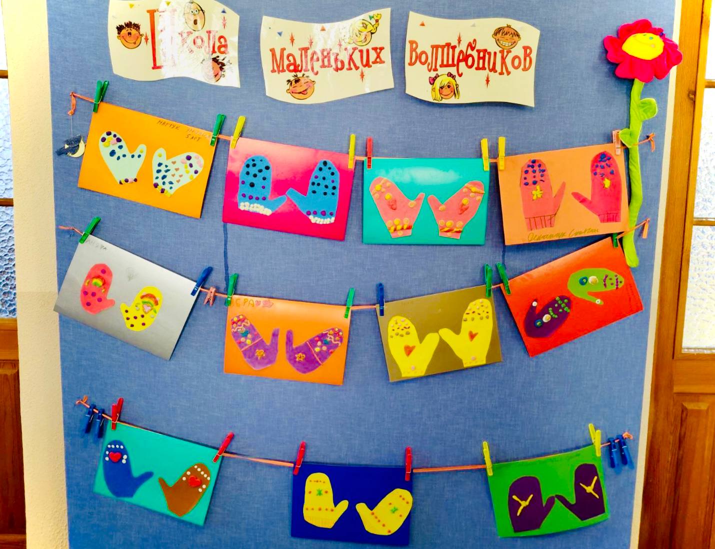 Чудеса в сказке начинаются с одной детской ладошки. У наших волшебников тоже появилась возможность — обведя контур своих ладошек у них получились зимние варежки, а украсив их яркими пластилиновыми кружочками, они создали настоящий шедевр.
