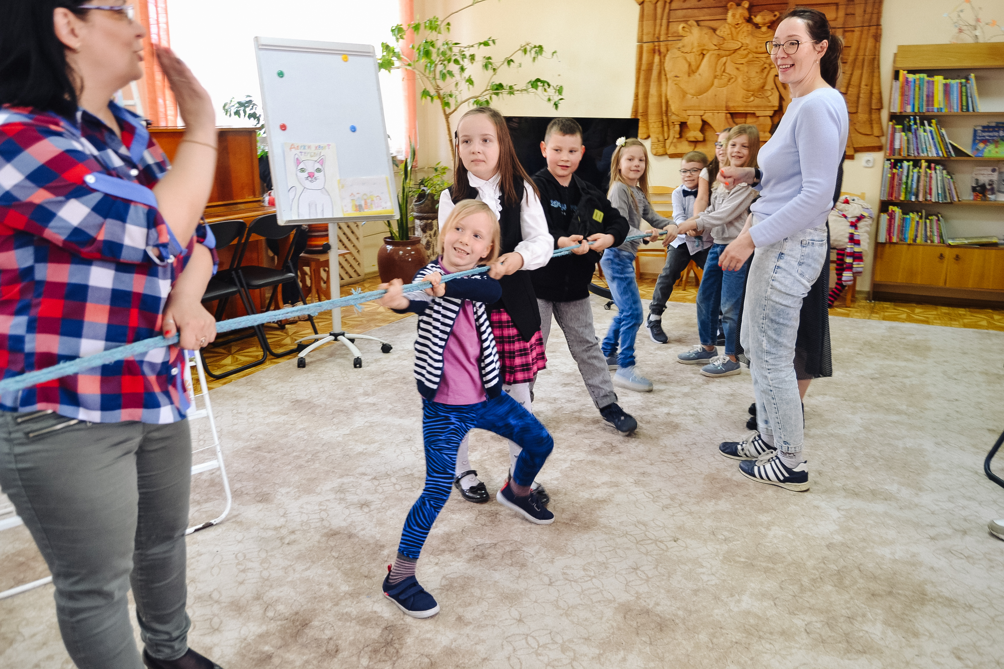 Сначала ребята презентовали рисунки «Я и моя семья», потом вслепую рисовали папа — маму, мама — папу. Помимо этого, читали стихи. Ребятам предложили принять участие в конкурсах «Наряди маму», «Перетяни канат», «Сочини сказку». Волшебники играли, разгадывали задания викторины по семейным книгам, танцевали.