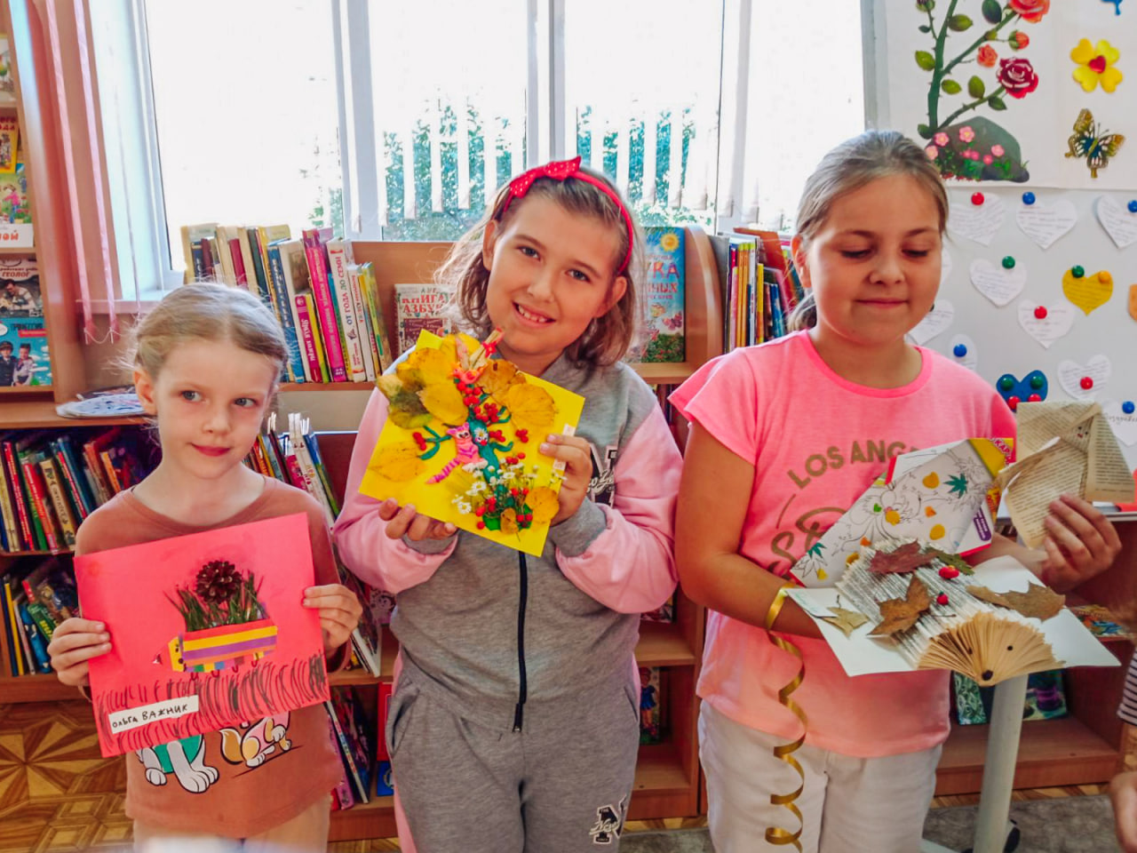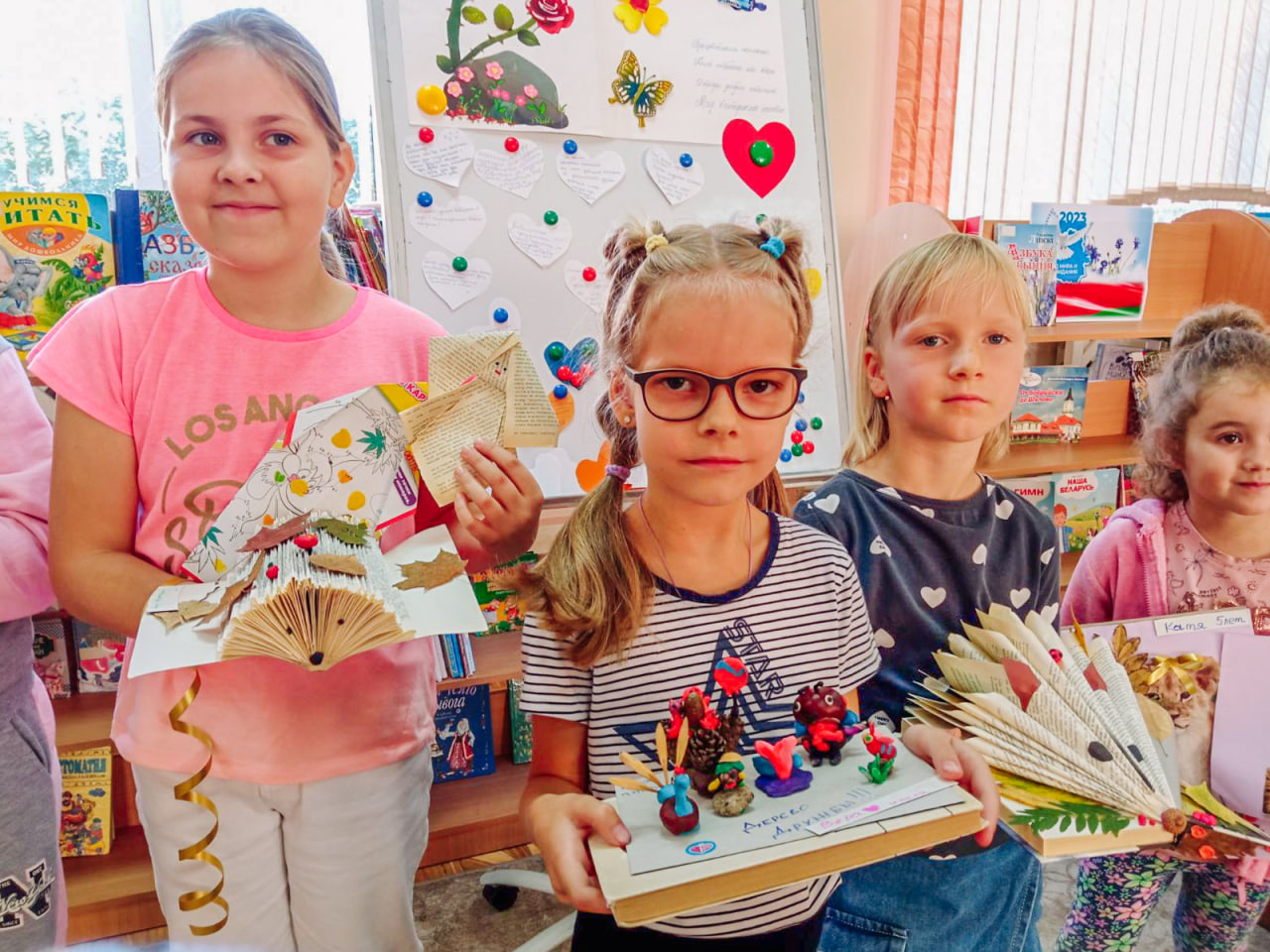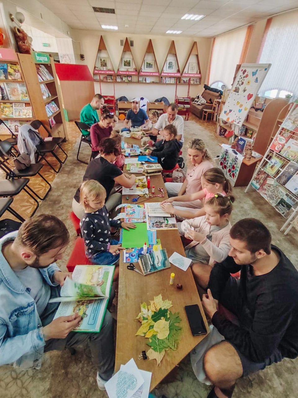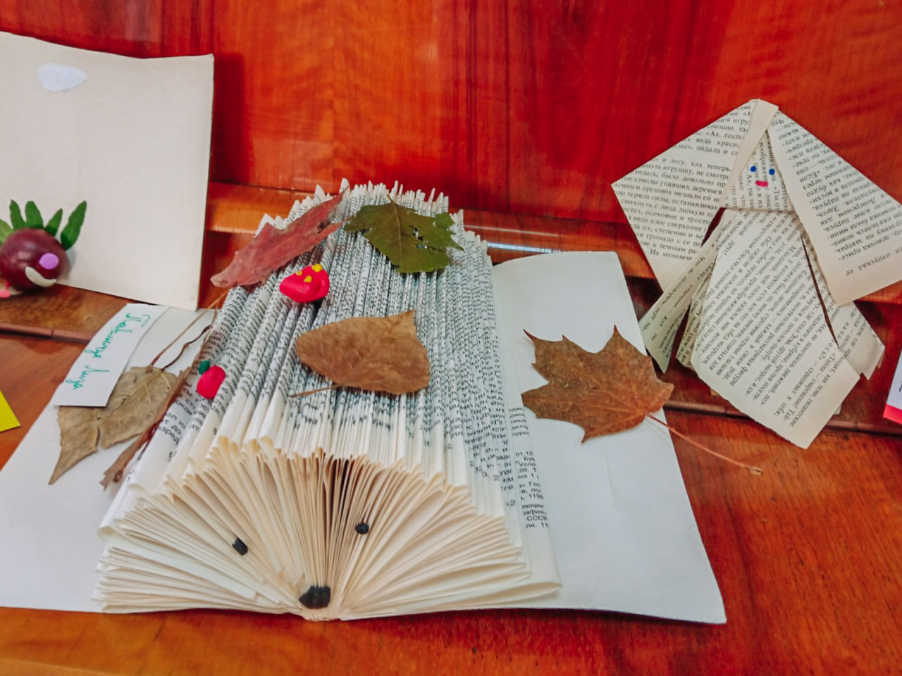 17 сентября занятие в Школе маленьких волшебников было посвящено осени. Ребята пришли вместе с родителями. Из старых книг, газет, природных материалов под музыку из детских сказок и мультфильмов ребята и их родители творили осенние чудеса. Работы украсили детскую библиотеку.