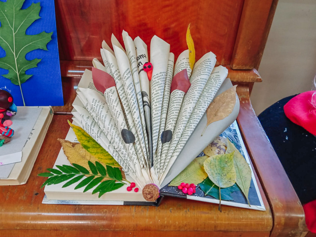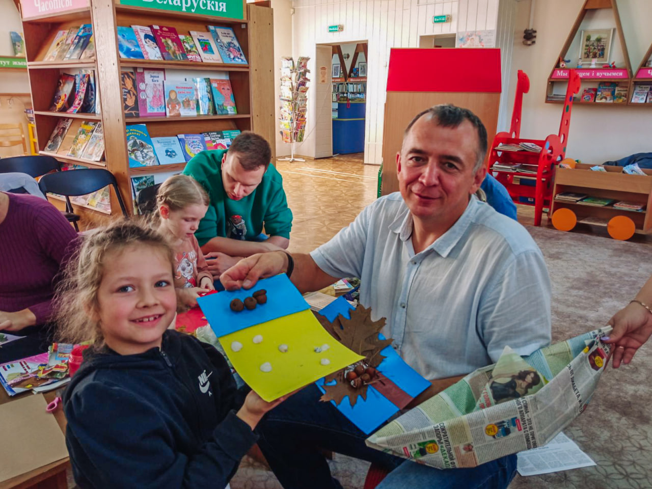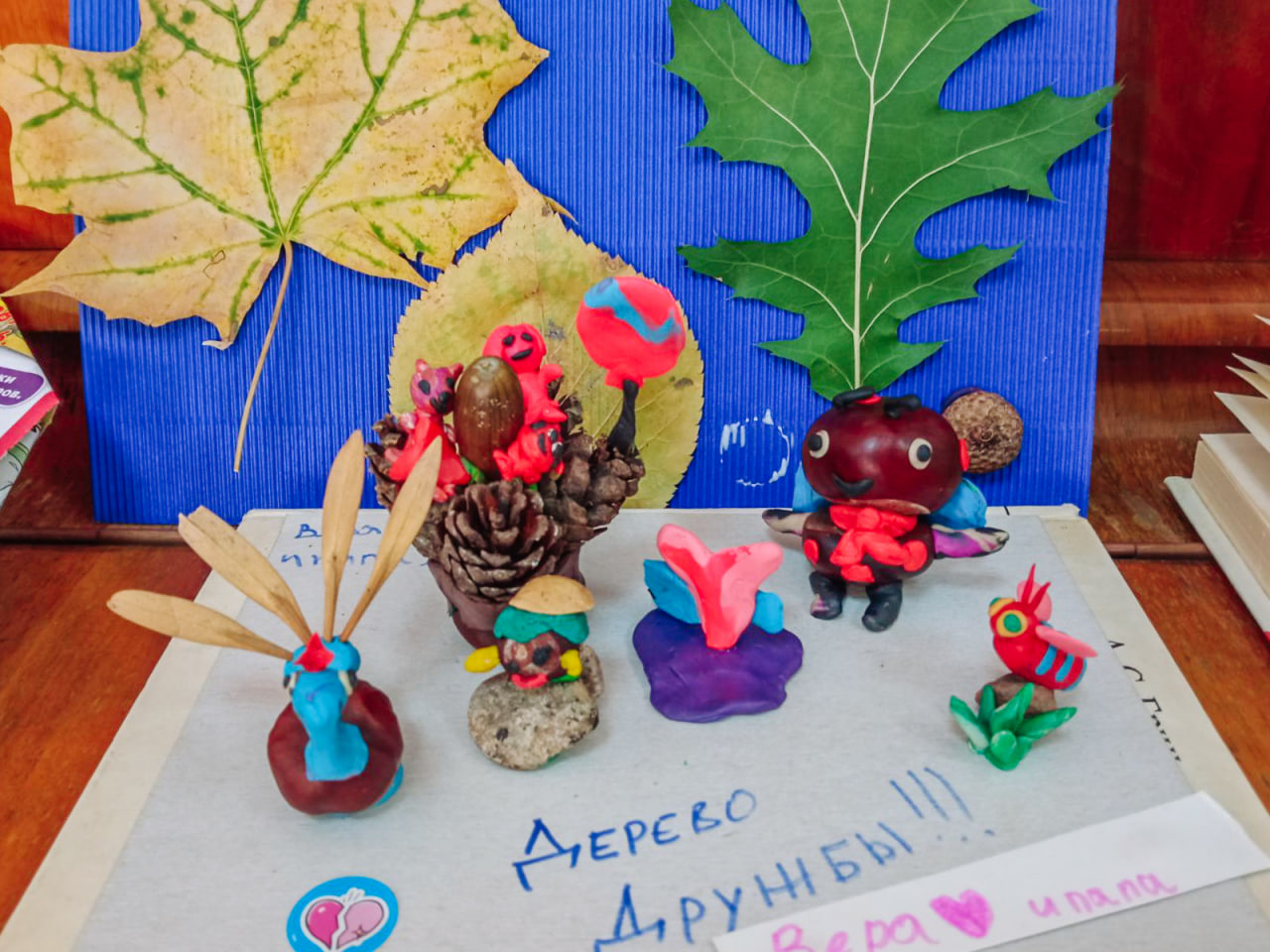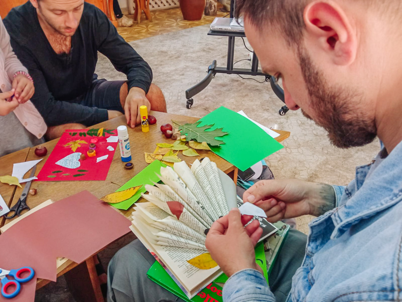 17 сентября занятие в Школе маленьких волшебников было посвящено осени. Ребята пришли вместе с родителями. Из старых книг, газет, природных материалов под музыку из детских сказок и мультфильмов ребята и их родители творили осенние чудеса. Работы украсили детскую библиотеку.