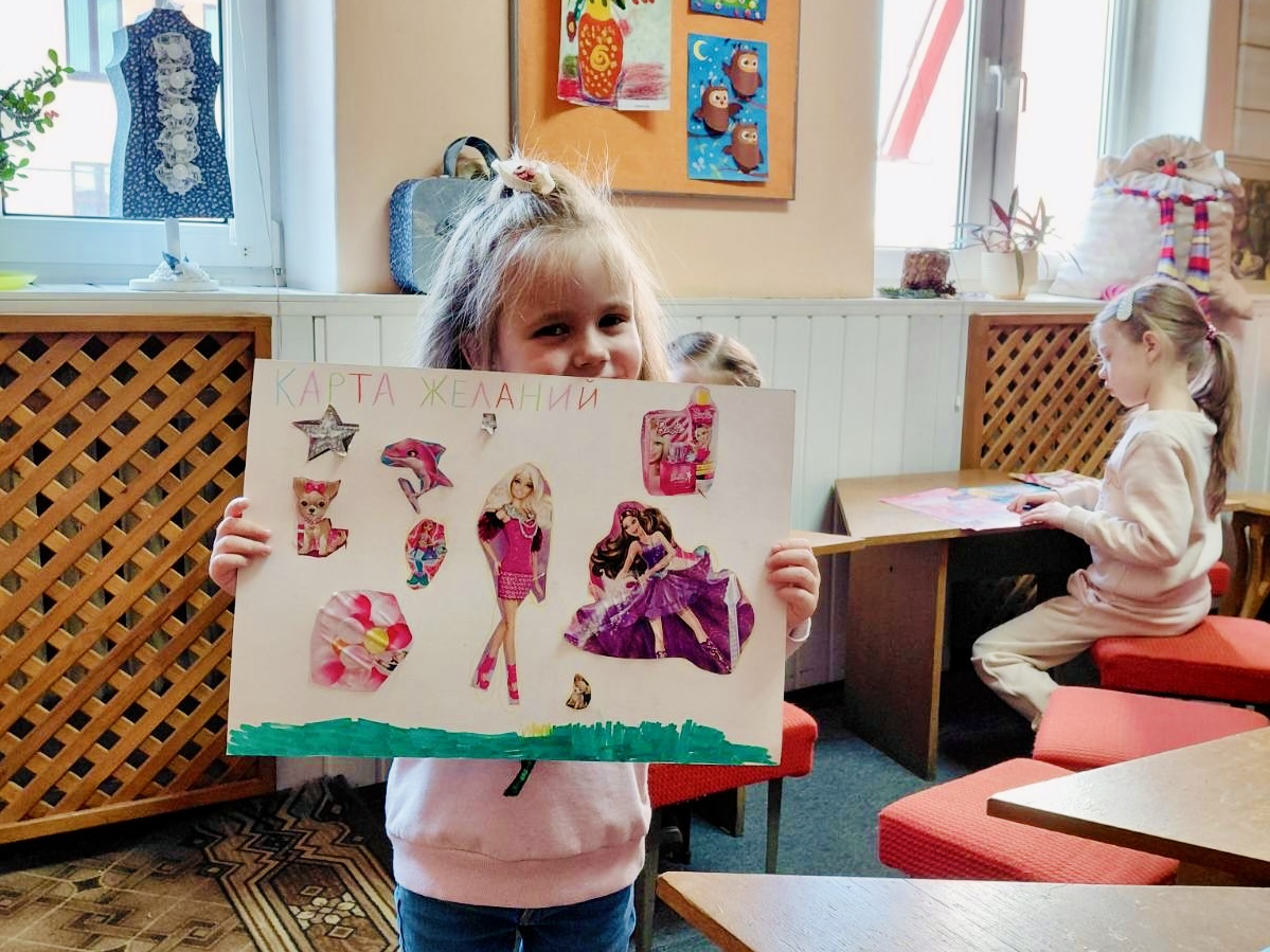 Далее наши волшебники поучаствовали в мотивирующем мастер–классе «Моя карта желаний». Многие верят, что именно после создания такой Карты желаний мечты действительно сбываются. Ребята помечтали, изобразили свои желания яркими картинками и собрали их на одном листе — в волшебном коллаже пожеланий. Это занятие стало настоящим праздником творчества и позитивных настроений!