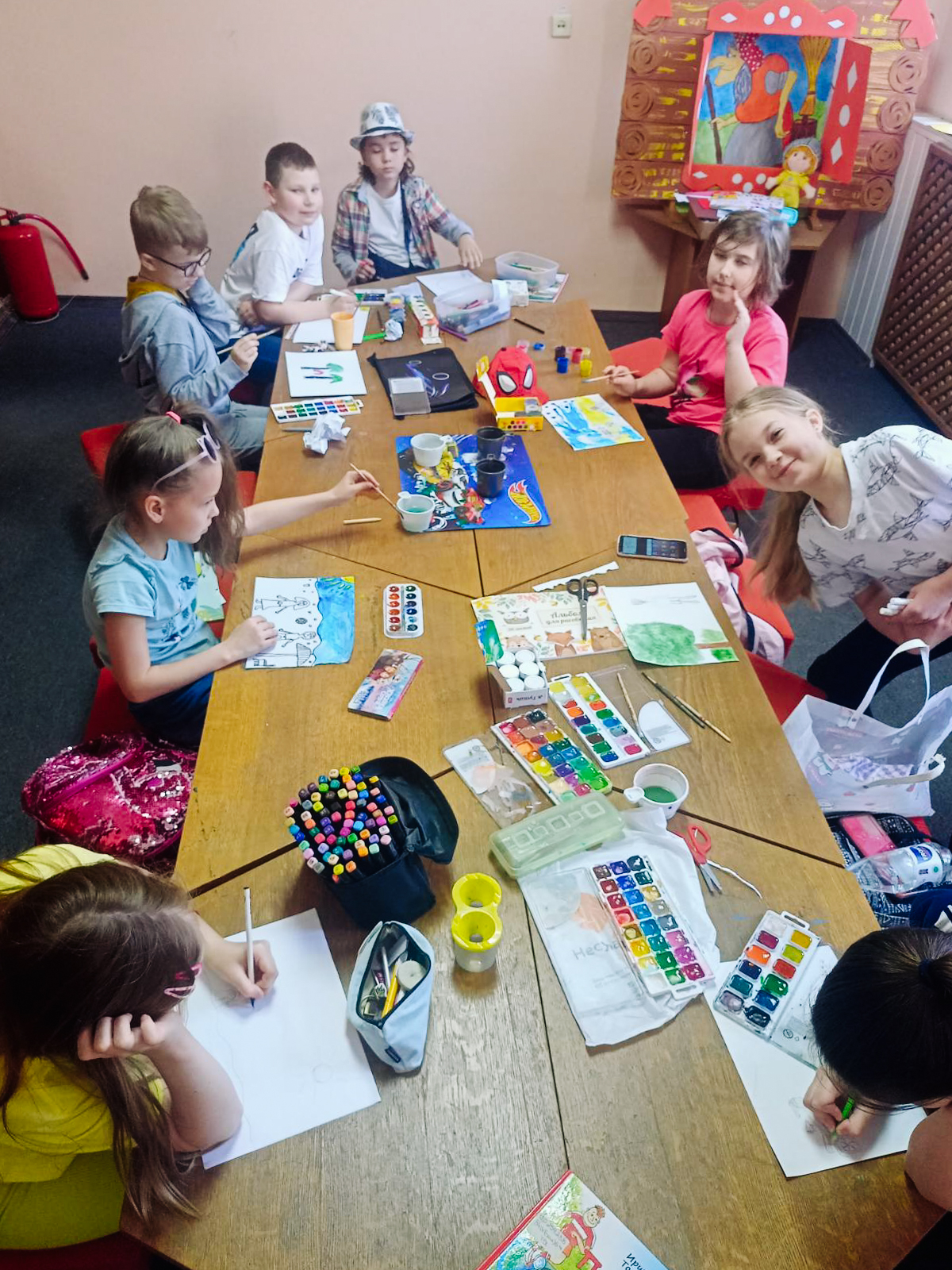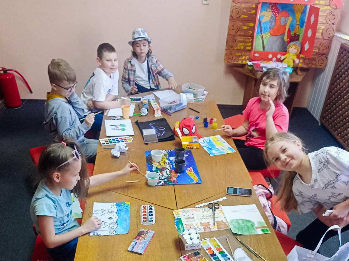 Волшебники отправились вместе с Конни в бассейн, познакомились с правилами поведения на воде. Ребята рисовали красками на тему «Я, спорт и лето».